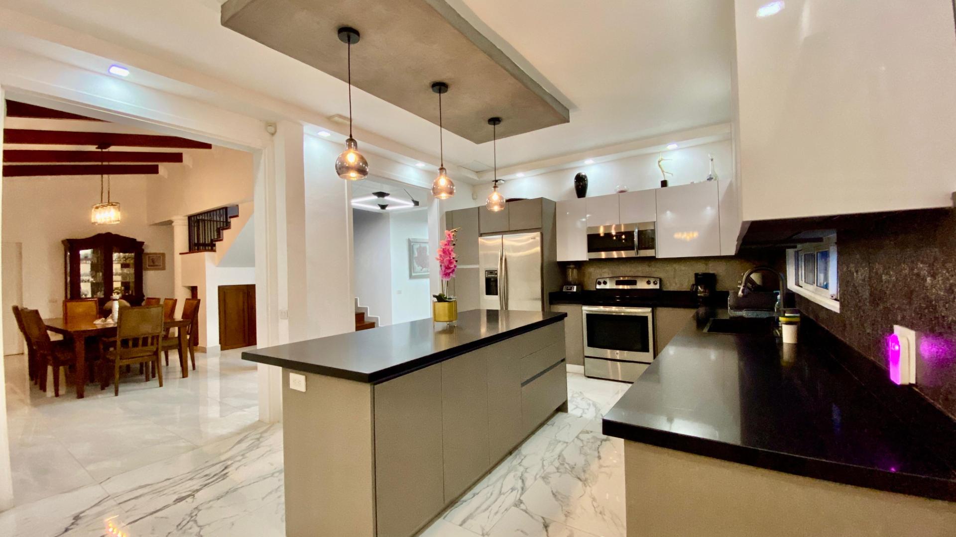 Built on a spacious 1,073 m² lot with 445 m² of construction, this fully furnished home is designed for comfort, functionality, and privacy. The residence features five bedrooms, each with its own en-suite bathroom, including two master suites located on the first and second floors, offering flexibility for families or guests. The interior layout integrates a formal living room, dining area, and a well-appointed kitchen with breakfast nook and pantry, creating a seamless flow for daily living and entertaining. Additionally, the home includes a dedicated office, a full guest bathroom, and a practical laundry area, all thoughtfully distributed to enhance everyday living.