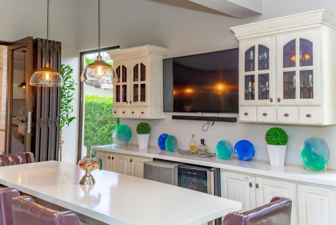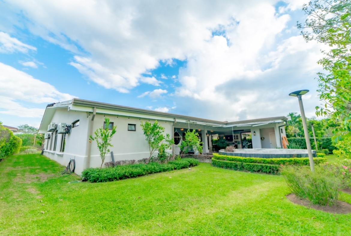 This beautiful single-level residence is located in one of the most desirable gated communities in Costa Rica — Hacienda Los Reyes in La Guácima, Alajuela. The home sits on a spacious 990 m² lot with 352 m² of elegant construction with classic architecture enhanced by luxury finishes and modern touches.